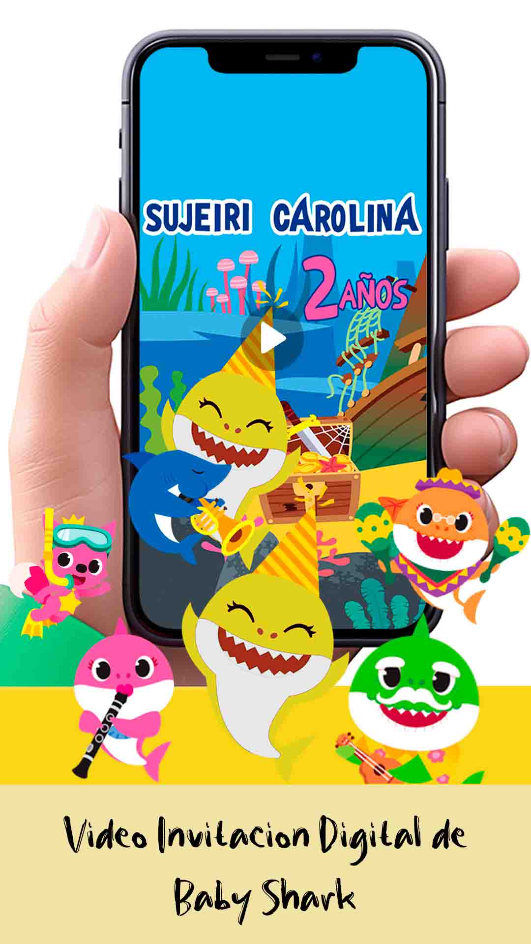 GALERÍA DE IMÁGENES - VIDEO INVITACIÓN DIGITAL DE BABY SHARK AMARILLO PARA CUMPLEAÑOS
